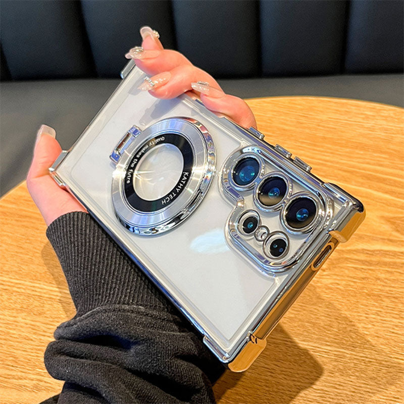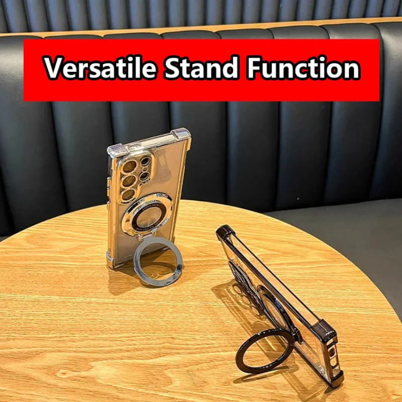 INVISIBLE STAND MAGNETIC CASE: This is a new range that offers magnetic ring and kickstand functionality for the Phone. When it's open, the built-in aluminum magnetic ring stands stable in portrait or landscape mode, and when it's folded, the back is completely invisible (not preventing the use of Magnetic Charging). It's great to use on your desk or anywhere when you're working or consuming media!