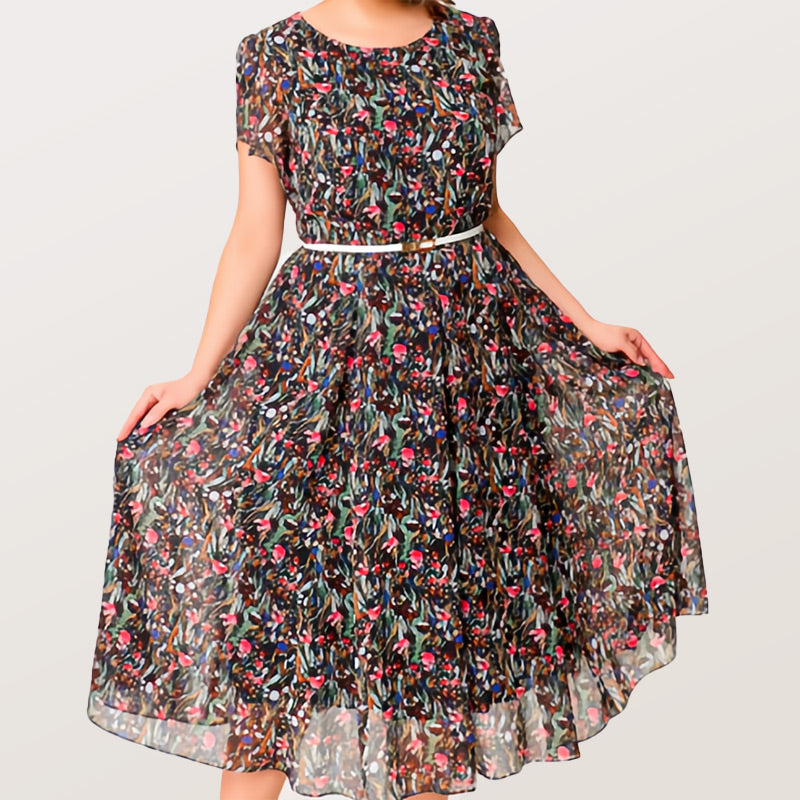 1 * Flowy Floral Dress with Delicate White Belt