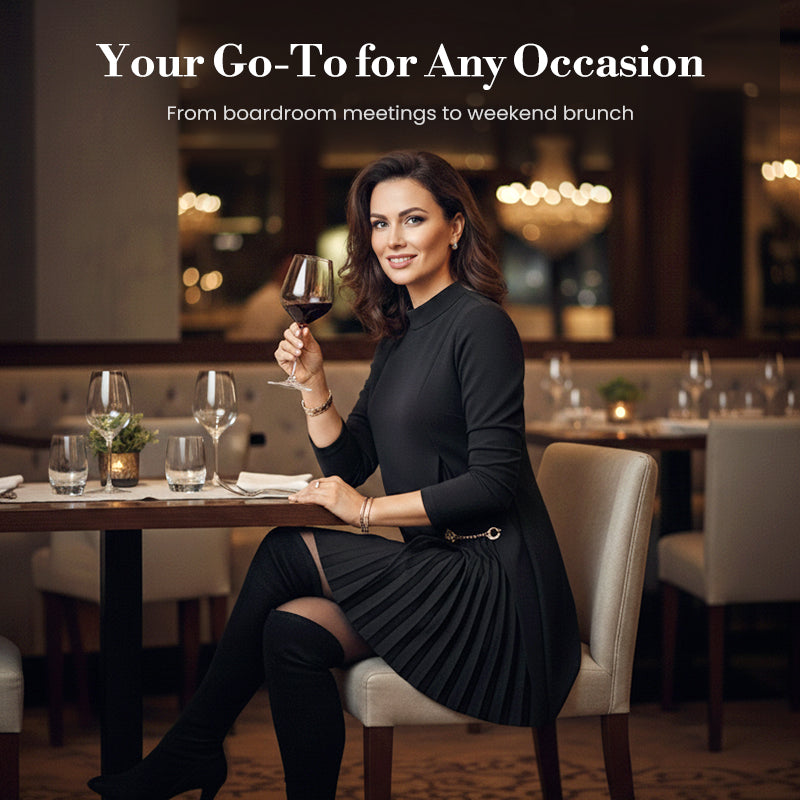 Elegant Long Sleeve Pleated Panel Dress