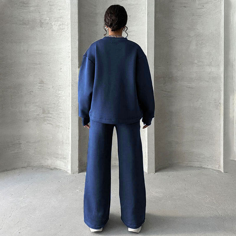 Package includes: 1*Fashionable two-piece set of solid color, loose and long-sleeved top with round neck and pants