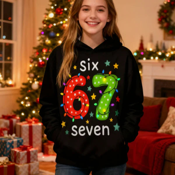 ⌛ Only 3 Days Left – 50% off everything! ⏰ Kids' Christmas Hoodie with "67" Graphic Print