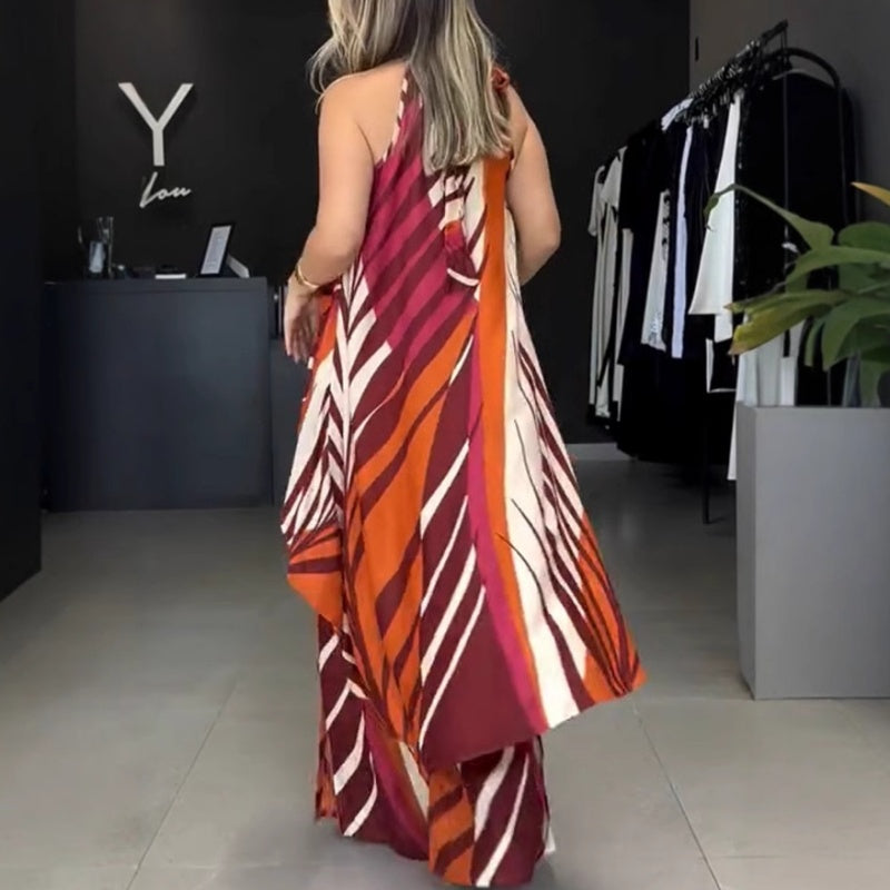 Printed High-Low Halter Top & Wide Leg Pants Set