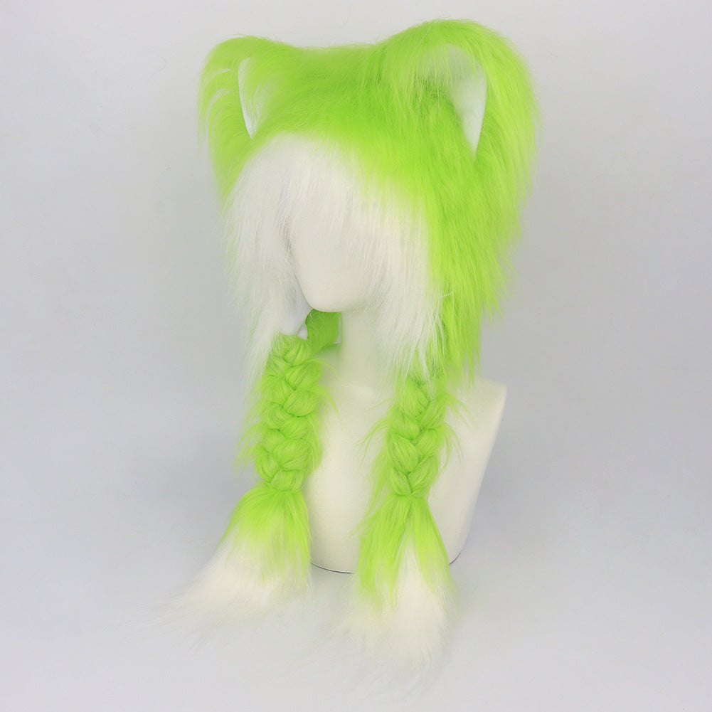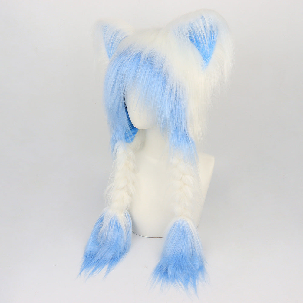 Two long plush braids hang from the headband, also designed in matching two-tone colors. They feel soft against the skin, add playful movement, and offer extra warmth—perfect for cold days or eye-catching cosplay looks.