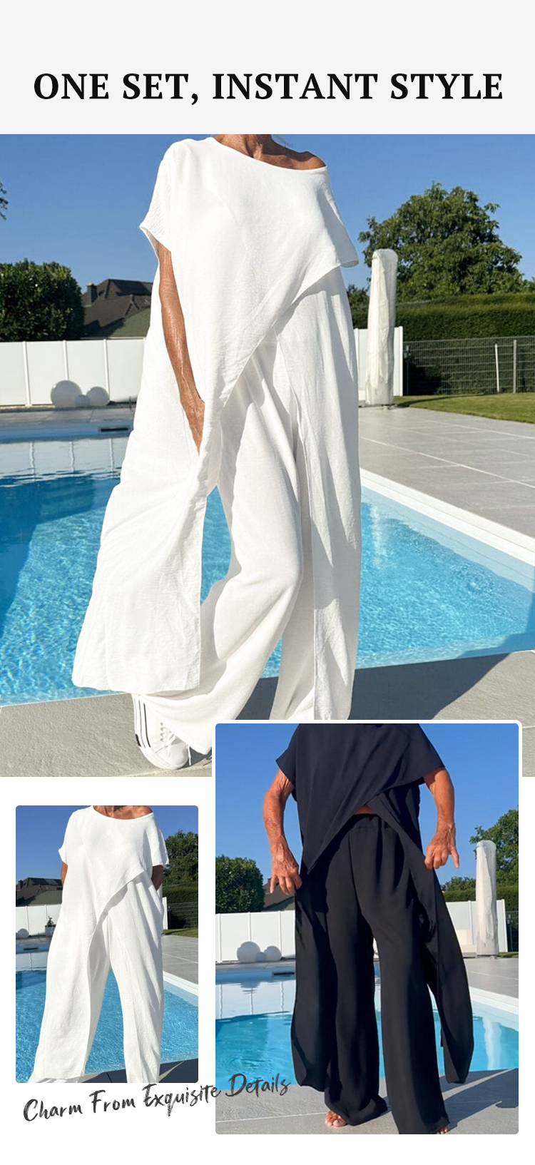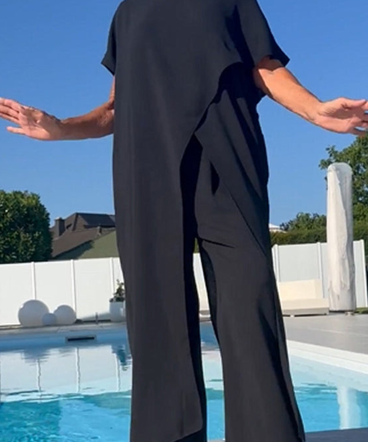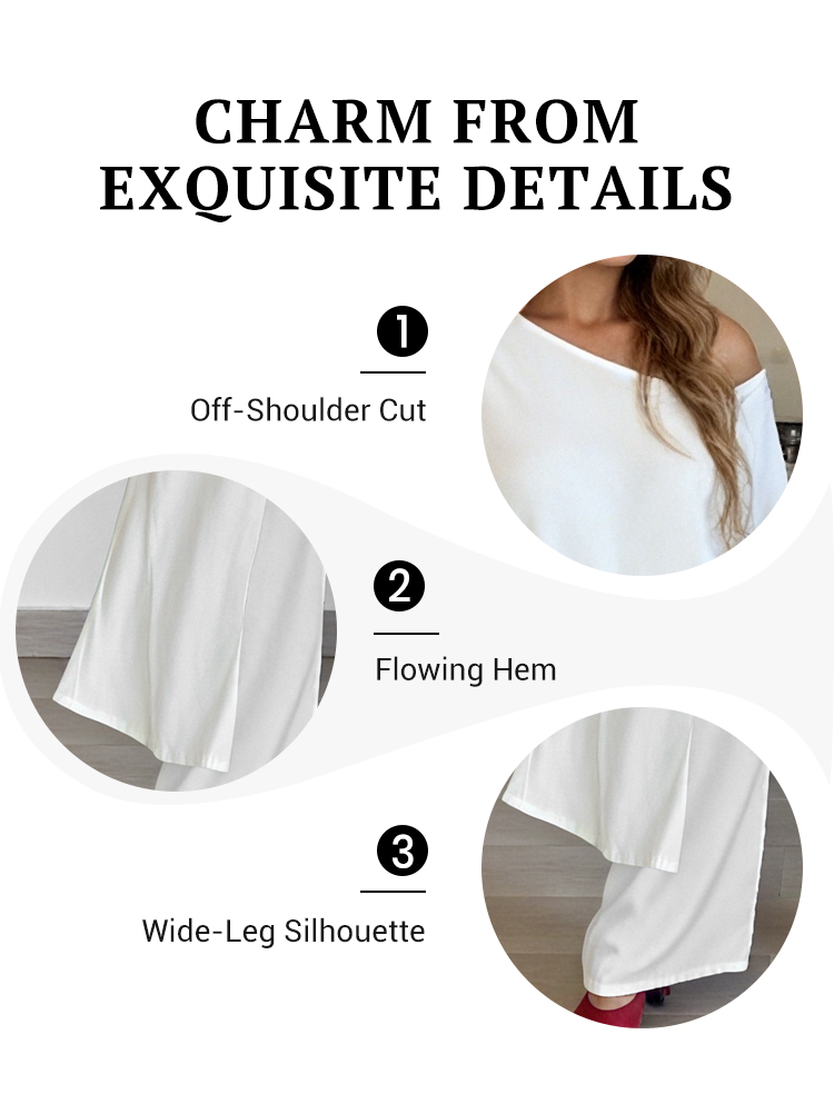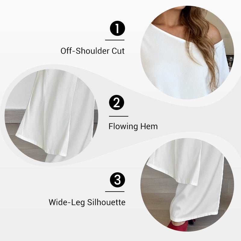 Solid Color Off-Shoulder Top & Pants Set