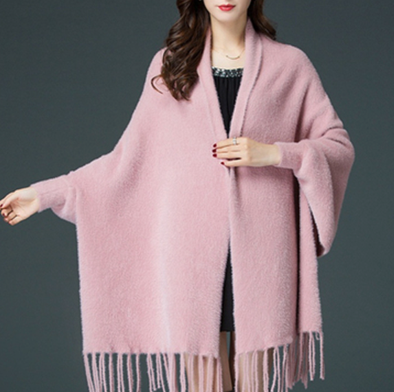 This thick cute shawl can keep you warm during winter,while making you look elegant and cozy!