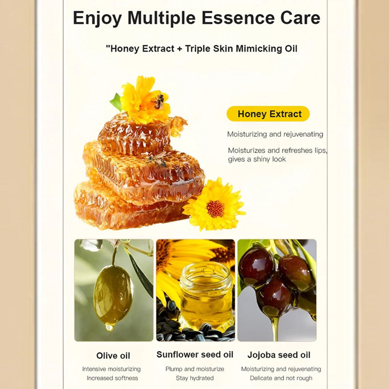 NOURISHING HONEY INFUSION: Formulated with honey extract, it provides deep nourishment while keeping lips fresh, non-sticky, and easy to absorb for a lasting moisturizing effect.