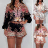 🌷Summer Hot Sale-49% Off🩵Fashion Prints Button Up Shirt Top & Belted Shorts Two Piece Set