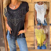 FLATTERING SILHUETTE: The women's solid colour short sleeve T-shirt is designed to fit all body types, with the tassel hemline providing a dynamic element that can draw attention away from the waist and create a visually appealing silhouette.Â
