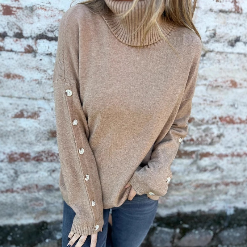 ELEGANT BUTTON DETAIL – Decorative buttons on the sleeves add a stylish touch to the solid-color design, offering a fashionable look with minimal effort, simple yet eye-catching.