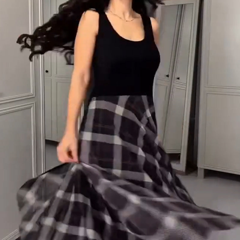 CLASSIC PLAID DRESS - Features a timeless plaid pattern on a sleeveless A-line dress, creating a look that is both fashionable and classic. It’s a perfect standalone piece for any casual or semi-formal occasion.