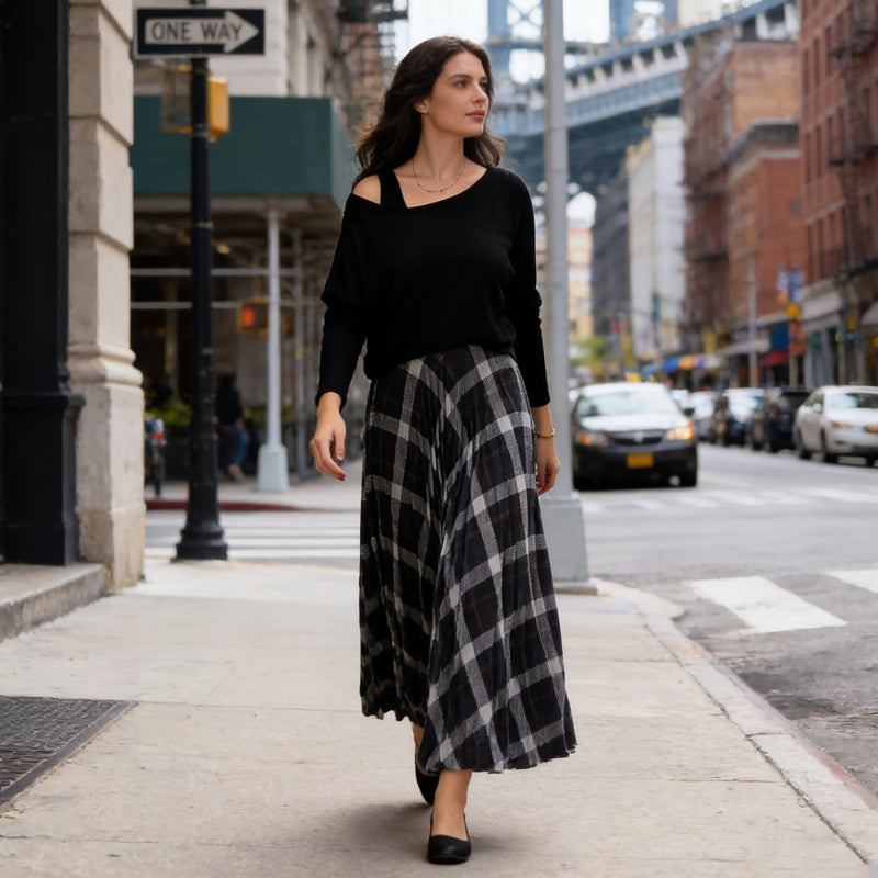 TWO-PIECE SET DESIGN - Offers incredible versatility. Wear the sleeveless plaid dress alone for a chic summer look or pair it with the long-sleeve top for added warmth and a layered, sophisticated style.